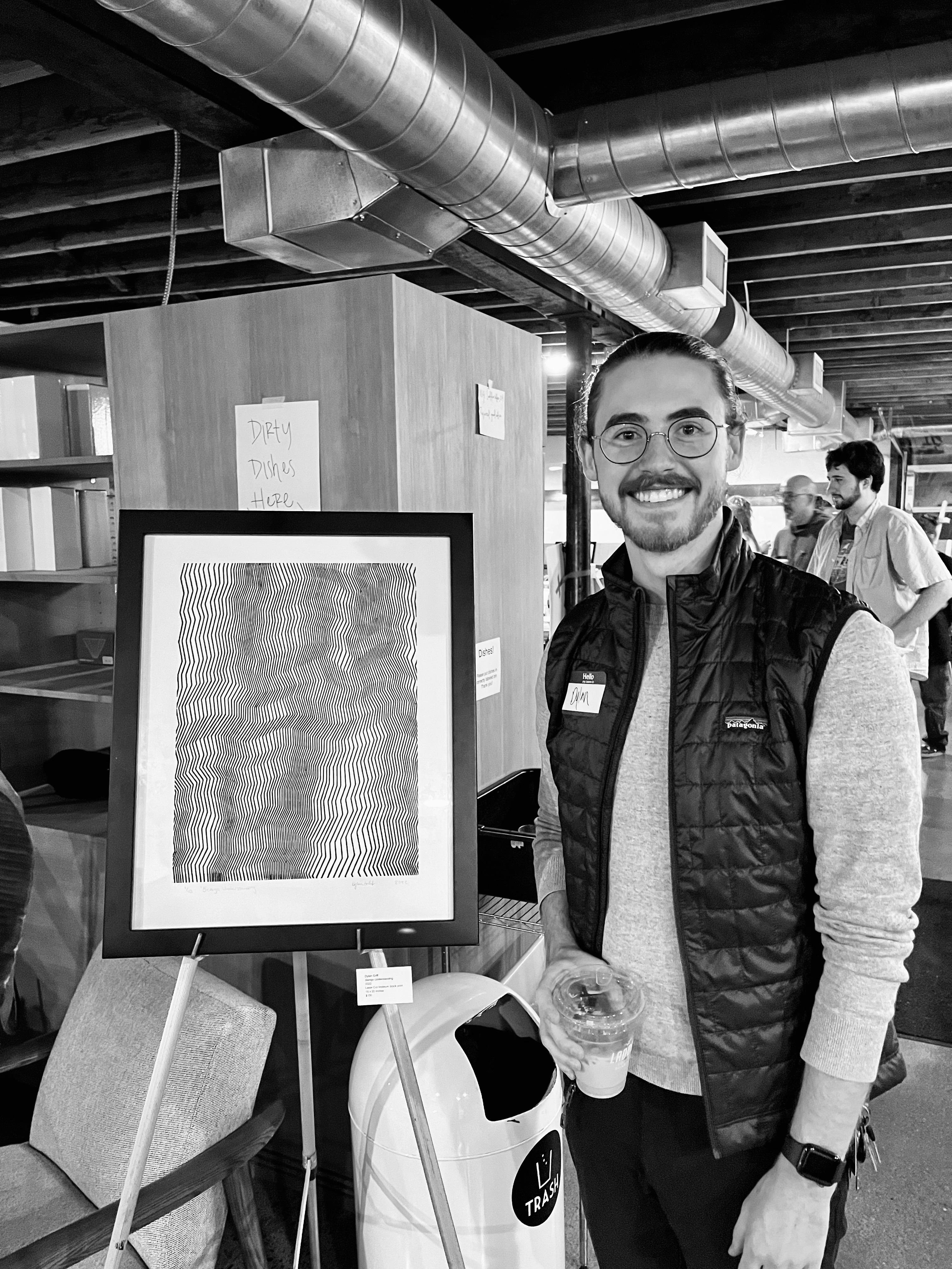 I focus on the intentional use of pattern, as well as positive and negative space in my practice to further the effectiveness of visual vibration and movement. Printmaking as a process allows for slow, repetitive movement and constant mindfulness. The process lends itself to the work I make with repeated line and shape.