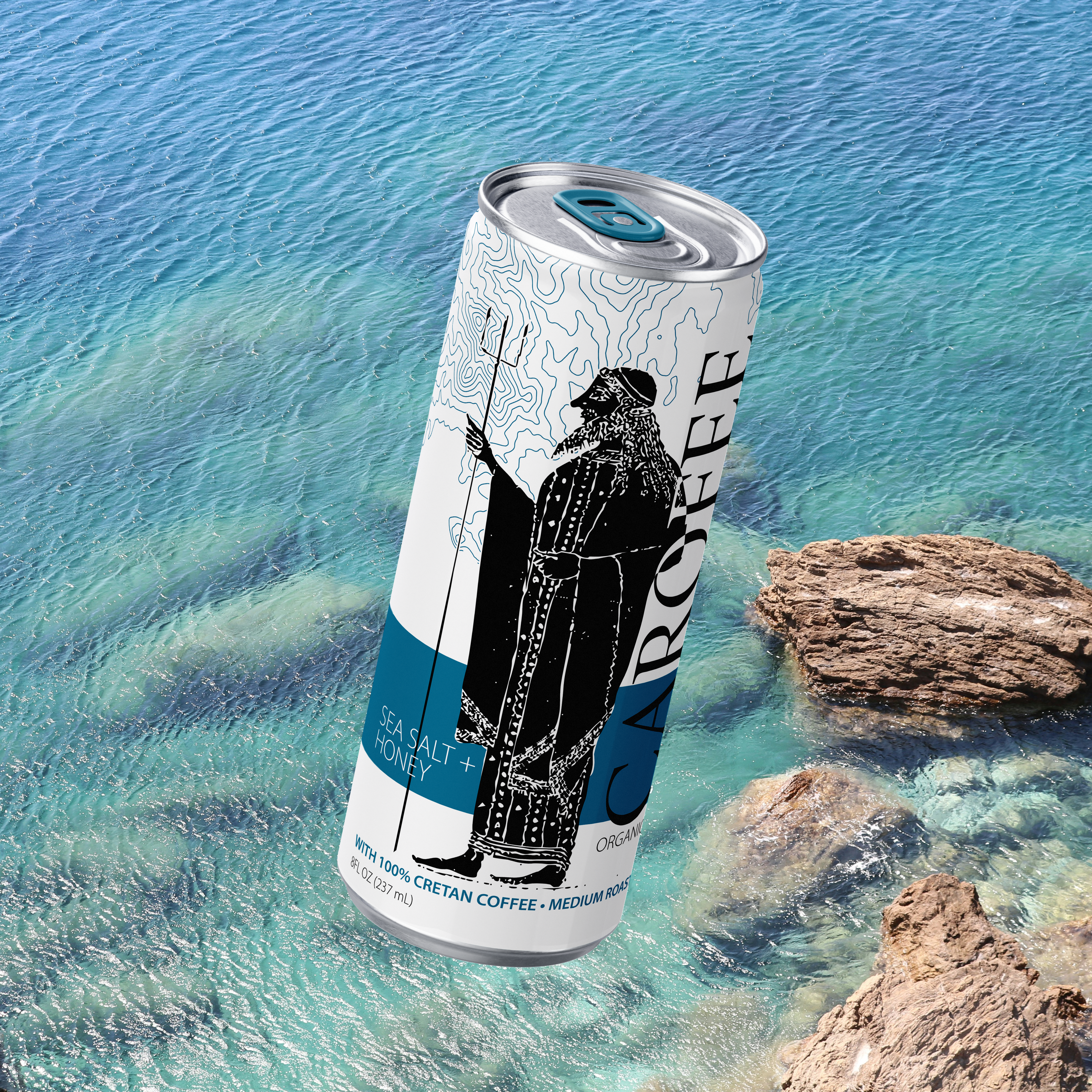This project includes branded packaging for two types of canned coffee drinks, a selection of beans, and a coffee cup sleeve. The imagery for this project was pulled from Greek black figure pottery styles depicting Poseidon, Athena, and Greek athletes, all brought into a modern brand.